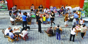本报记者 张 谨 实习生 徐 佳 周 丹 9月12日,中秋夜,明月高挂。百姓变成了“偷瓜贼”!边城镇热闹起来了! 他们三五成群,沐浴着月光,打着手电、在别人家的瓜地里你叫我嚷,挑精选肥,全然没有做贼的畏惧。瓜地失窃的张云桂老人笑着说:“中秋偷瓜,我们祖祖辈辈都是这样搞过来的哩!” 据说,古时,生育环境不好,新生婴儿成活率低,善良的百姓就在中秋节以“瓜”代“子”,将偷来的瓜送给没有孩子的家庭,为他人祈福。如今,偷瓜已演变为当地人的一项娱乐活动。 抱着瓜,满载而归的“偷瓜贼”们,邀集街坊邻居,在街边摆起了长桌宴。李家拿出一只现烤的板鸭,张家端出一份格格鱼煮豆腐,王家备齐了二锅头……一桌丰盛的晚餐,鸡鸭鱼肉,样样不缺。妇女们将“偷”来的南瓜,做成美味的菜肴,端上方桌;男人们端着酒杯,大大咧咧,说着酒话;小孩们啃着有鸡腿,在饭桌旁,欢笑着、追逐着。 其实,边城镇“打平伙”很平常,3天一小聚,5天一大聚,街坊邻居亲如一家人。如果哪家遇到红白喜事,街坊们只要听到爆竹声,都会不请自到,来帮忙。大口嚼着扣肉的翠翠鱼馆的老板曾祥贵,接着话茬:“那爆竹声,比城里的请帖和电话管用多了。” 此时,边城镇码头社区的居委会主任蒋发新也加入了百姓的狂欢。他是上世纪60年代来到边城镇工作的知青,边城把他留住了,这一待便是五十载。这50年他见证了边城的发展与变化。蒋主任说:“什么都在变就人没变,我住在城里面不习惯了,两家对门对户住了几十年都不知道对方姓什么。不像在边城,端着饭碗、串门、蹭饭、扯谈、喝点小酒,这日子过得快乐、清闲。” 夜深了,喧闹的边城又恢复了宁静,白塔、拉拉渡、民居伴着鼾声隐没在十五的月夜里。 |
