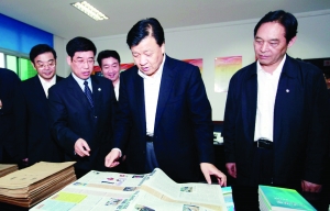 21日下午,刘云山一行来到团结报社,报社干部职工穿上节日盛装,迎接领导视察工作。