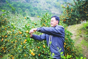 又到橘红时,龙山县里耶镇大力加强一村一品建设,实施大户带动,取得良好效果。该镇红花村支书徐德成引进南丰蜜橘70亩,并带动全村种植1900多亩,今年预计全村总产量逾200万公斤,成为该村名副其实的支柱产业。图为徐德成在采摘橘子。 彭开科 摄
