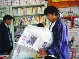 11月16日,泸溪县达岚镇五德村2组村民李德军(右),正在本村农家书屋内翻阅近期的《团结报》。为方便老百姓阅读党报党刊,从报刊中及时了解党的惠农富民政策和科技致富经验。今年初,该村在主干会上定下了村级公费订阅的党报党刊,统一由农家书屋负责保存,以供村民及学生阅读,一改过来报刊只堆积在村干部家中的作法。此举,群众叫好。