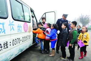 11月17日,河南商丘市公安局交警支队一大队民警和老师护送小学生安全上车。当日,河南商丘市公安局交警支队一大队对辖区中小学、幼儿园接送学生、幼儿的校车进行全面安全检查。对在检查中发现不符合要求的车辆,特别是存有事故隐患的车辆,坚决杜绝上路。民警在检查的同时,还对乘坐校车的小学生开展现场安全教育,提高中小学生的乘车安全和自我保护意识。 新华社