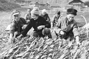 11月24日,古丈县双溪乡官坝村村民抢抓茶苗扦插繁育的有利时机,在新开垦的茶园里扦插茶苗。自今年7月“古丈毛尖”获“中国驰名商标”称号后,该县采取财政补贴、层层办点、示范带动等方式,总投入资金320万元先后在双溪乡官坝村、溪流墨村等地培育良种茶叶繁育苗圃200亩,目前已发展茶园8.5万亩,有近万名群众投入到此次茶叶大生产中,预计到2012年底,将累计出苗3000万株。