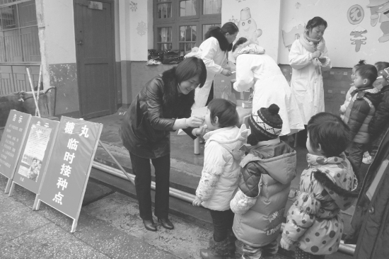 12月5日至10日,保靖县开展今年第一轮脊髓灰质炎疫苗强化免疫活动,县内1.5万多名2月龄至3岁儿童带上预防接种证,免费服糖丸疫苗。图为县政府有关负责人与县疾控防疫中心工作人员在县幼儿园开展糖丸免费接种活动。 易 果 黄 河 摄