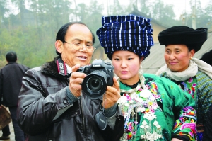 12月24日,花垣县摄协会员来到该县补抽乡吉久村,免费为当地苗族群众拍摄全家福、生活照。图为村民在选看自己的照片。