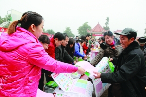 1月13日,保靖县委、县政府“三下乡”慰问团,来到该县复兴镇普溪村开展春节慰问活动。本次慰问活动共发放科普资料3000余份,现场书写赠送春联100余副,给广大群众送去了一场精彩的文艺演出。图为村民领科技资料。