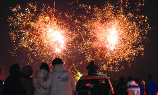1月23日零时,吉首市举行“谷韵吉首”焰火晚会,五彩缤纷的礼花在夜空绽放,迎接龙年的到来。 本报记者 张 谨 实习生 杨 珩 摄