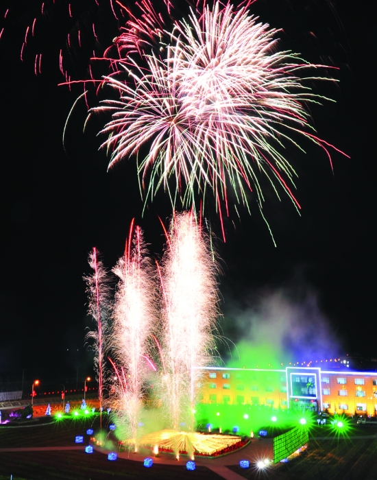 1月22日,东北特钢集团大连基地喷泉广场上空烟花竞放,姹紫嫣红。 新华社发(刘德斌 摄)