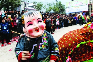 1月25日以来,吉首市民间民俗贺新春活动频繁,正月初三,大型花灯游春;正月初四,矮寨镇百狮会;正月初五,德夯风景区百狮会;正月初十,矮寨镇大兴村百狮会,吸引了成千上万的群众参加。图为矮寨百狮会场景。