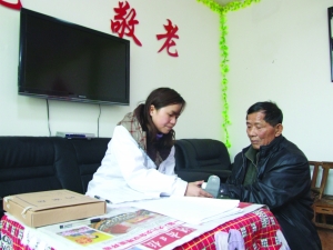 白岩乡敬老院于2005年开办以来,目前共有五保老人60名,为全面掌握这些五保老人的身体状况,该乡卫生院逢年过节都会对院里的每一位老人逐一进行血压、血糖、心电图、B超、视力等检查,并为每位老人建立了个人健康档案,使老人们对自己的健康状况做到早知道、早预防、早治疗,为孤寡老人安度晚年提供保障。 本报记者 周 堃 摄