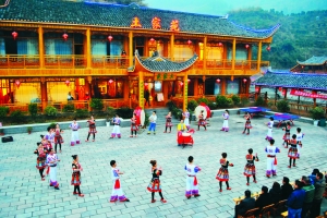 2月15日,永顺县土家族艺术团的演员们在县城边的土家苑,为来自内蒙古正蓝旗的民族文化考察团一行表演土家族舞蹈《摆手舞》、《毛古斯》、《打溜子》、《哭嫁》等,受到了考察团的喜爱。