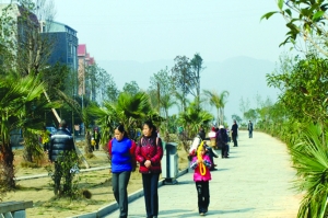 近年来,泸溪县委、县政府先后修建了十里休闲长廊,修建盘瓠、橘颂、辛女等文体广场,开通了文化信息资源共享工程,县图书馆、文化馆全部实行免费开放,极大地丰富了居民的业余文化生活。图为2月25日,在泸溪县城白沙的沅江大道上,市民们结伴散步、休闲,尽情享受休闲健身带来的快乐。 唐正海 摄