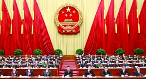今天的人民大会堂气氛庄重热烈。2872名代表出席闭幕会,出席人数符合法定人数。