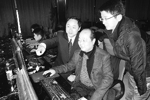 凤凰县鸿滕文化传媒网络服务有限责任公司在县建设银行的大力支持下,投资1200万元整合全县网吧,实行股份制经营。图为3月13日,该县建设银行负责人了解网吧经营情况。