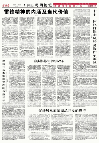 龙三高 雷锋精神,是以雷锋的名字命名、以雷锋的精神为基本内涵、在实践中不断丰富和发展着的时代精神,其实质和核心是全心全意为人民服务,为了人民的事业无私奉献。它已经成为我们这个时代精神文明的同义语、先进文化的表征。通读雷锋日记,我们认为雷锋一生有五个方面值得去学习和追寻。 理想信仰:一心向着党,向着社会主义 雷锋说:“党像慈母一样,哺育着我长大成人。是党给了我生命;是党给了我幸福;是党给我指出了前进的方向;是党给我开辟了前进的道路;是党给了我前进的力量;是党给了我一切。”“为了党,我愿洒尽鲜血,永不变心。”这字里行间充满了对党、对社会主义的无限深情,凸显了一个共产党员应有的坚定人生信仰和为党的事业努力奋斗的精神。 雷锋忠于党、热爱社会主义的坚定信念,并非只停留在口头上、日记里,而是体现在坚决听党的话,照党的指示办事,为党的事业努力奋斗的具体行动上。党要他干啥就干啥,干啥就一定要干好啥,正像他在日记中讲的:革命需要我烧木炭,我就去做张思德;革命需要我去堵枪眼,我就去做黄继光。 崇高精神:全心全意为人民服务,无私奉献 全心全意为人民服务,是贯穿在雷锋一生中最突出、最动人、最完美的主旋律,也是雷锋精神的核心内容,反映了雷锋无私奉献的人生态度。 雷锋在全心全意为人民服务上,具有十分鲜明的特点。 其一,言行一致。从农村到机关,从工厂到部队,在他走过的地方,凡是对国家、对集体、对人民有利的事情,他都自觉地积极去做,用自己的实际行动模范地践行了自己的诺言。其二,不图名利。雷锋做好事,事先没有向领导请示,事中没有领导看到,事后没有向领导汇报,更没有报酬,他不是为了往脸上贴金,也不是想捞取点实惠,而是要“永远愉快地帮助别人,毫不计较个人得失……”雷锋的“傻子”精神,充分表现了一位伟大共产主义战士的博大胸怀和为人民服务的执著追求。其三,始终如一。一个人做点好事并不难,难的是一辈子做好事。雷锋做好事,为人民服务,并不是靠一时的热血和激动,而是坚持不懈,始终如一,他为人民做好事,从不间断。 敬业态度:甘当革命的“螺丝钉”,干一行爱一行钻一行 雷锋有一句闪光的语言———“在伟大的革命事业中做个永不生锈的螺丝钉”。他把自己当做一颗螺丝钉,拧在哪里,就在哪里闪光。 雷锋用对革命工作极端负责的态度来体现甘当革命的螺丝钉的实干精神。他曾经说过:“我要积极肯干,做到说干就干,干就干好,脚踏实地,实事求是地干,千方百计地干,事事拣重担子挑”。在雷锋短暂的一生中,他不论干什么工作,都踏踏实实,从不偷懒耍滑。在各个工作岗位上都创造出了一流的工作成绩,发挥了“螺丝钉”的作用。我们学习雷锋,发扬雷锋精神,就要像他那样,干一行爱一行钻一行,用甘当革命螺丝钉的实干精神来对待自己的工作,在平凡的岗位上为国家为人民创造不平凡的业绩。 “钉子”精神:刻苦学习和钻研理论 雷锋说:“人不吃饭不行,开车没有方向盘不行,干革命不学习毛主席著作不行!” 在学习上,雷锋有一股“钻”劲。不管遇到什么困难,他都要千方百计把它搞懂。他在学习毛主席著作中,总结了五步学习法:一是分析每篇文章对当时革命运动起什么作用;二是主席为什么分析这个问题;三是主席在文章中提出几个什么观点;四是主席的方法论是什么;五是联系个人写心得体会。据相关资料记载统计,他在短暂的一生中,共写了9本近20万字的学习心得笔记。这些是他刻苦钻研理论知识的真实记录。我们学习雷锋,发扬雷锋精神,就是要像他那样明确学习目的,坚持理论联系实际,特别是要发扬“钉子”精神,善于挤和钻。 优良作风:勤俭节约、艰苦奋斗 雷锋精神的一个重要内容就是艰苦奋斗。 在他看来,不能认为到了社会主义社会就应当什么都好了,就可以不费力气享受现成的幸福生活了。我国还存在许多困难,为了克服这些困难,一切都要做长期的打算,注意节约。正是从这种思想认识出发,雷锋对自己提出了严格的要求:“要记住:在工作上,要向积极性最高的同志看齐;在生活上,要向水平最低的同志看齐。”雷锋严格要求自己,为我们树立了光辉榜样。艰苦奋斗是我们的传家宝。学习雷锋,发扬雷锋精神,就是要像他那样,勤俭节约,艰苦奋斗,自觉为国分忧,乐于奉献。湘西州属于山区,人口多,底子薄,经济、文化基础薄弱,实现脱贫致富不能一蹴而就,需要经历一个过程,这就更需要我们自觉地把艰苦奋斗精神发扬光大。 社会主义市场经济是否还需要雷锋精神,在新的形势下是否还需要学习雷锋精神,这实际上就是如何认识雷锋精神在当代的价值问题。从某种意义说,越是搞市场经济,越是需要雷锋精神。因为社会和时代在发展,而雷锋精神却具有永恒的价值和长久的生命力。伟大的时代需要伟大的精神。在新世纪新阶段,要实现全面建设小康社会的奋斗目标,不仅需要物质文明的发展,也需要精神文明的支撑。 第一,雷锋精神产生和传播的社会基础仍然存在。社会主义市场经济与过去不同的是经济体制的转换,而非社会制度发生了质的变化。当年促使雷锋精神产生和传播的基本社会基础依然存在。社会最根本的条件未变,雷锋精神也不会失去传播的条件。40多年来,特别是这段时期,雷锋式的模范人物不断涌现,雷锋精神不断发扬