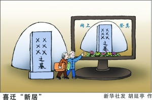 据了解,随着人们清明节祭祀观念的逐渐转变,以网络祭祀为主的低碳环保祭祀方式正蔚然成风。在百度搜索上,敲入“网上陵园”字样可搜索到相关链接140万个,而据业内人士估算,目前全国网上陵园有近千家。 新华社发 胡延亭 作