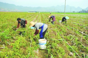 时值春耕春种时节,在壮乡广西百色市平果县各乡镇,活跃着一群田间钟点工,他们帮助雇主家犁地耙田、种植作物、护理庄稼、采摘销售蔬菜等。这些钟点工以留守妇女为主,每小时工资6元左右。由于当地许多青壮年劳动力常年外出打工,钟点工十分走俏。 新华社发(罗郅肯 摄)