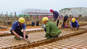 5月6日,花垣县工业园区的湖南东方矿业15万吨无硒高纯电解锰项目建设现场,施工人员在第四电解车间扎摸及铺设钢筋。东方矿业是该县按照“等量置换”原则淘汰落后产能,对县内8家电解锰企业实施整合重组而建的一家大型锰业集团,项目总投资12.59亿元。 龙艾青 摄