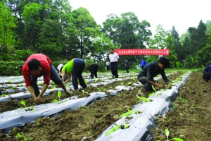 龙山县桂塘镇桃子村位于海拔上千米的乌龙山大峡谷顶峰。该村在县委办、县科技局扶贫队的帮助下,去年种植烤烟1000亩,总收入220万元,人均增收200元。尝到种烟好处的村民今年种烟劲头更足。图为5月7日该村举行烟苗标准化移栽竞赛活动。 陈新祥 摄