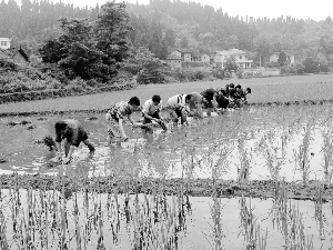 泸溪县达岚镇达岚坪社区姚冲组的寨子边一丘32亩的水田,被称为该县的“田王”。5月29日中午,该组村民黄明清在毗邻寨子村民组成的“农忙互助组”的帮工下,插完了“田王”中承包的2.5亩秧,封住了“田王”的“龙口”。至此,该镇农民插秧接近尾声。 吴代清 摄