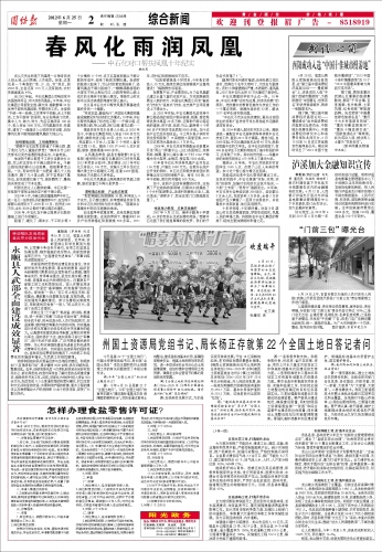 州国土资源局党组书记、局长杨正存就第22个全国土地日答记者问