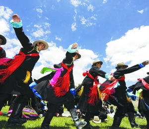 当日,西藏浪卡子县阿扎乡上千农牧民与山南地区广电局驻村干部举行歌舞联欢,庆祝建党91周年,迎接党的十八大胜利召开。