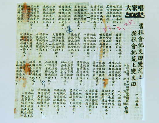 下瓦水农民读报组员集体编创的一篇“三棒鼓”词,经编辑修改发表,起到了农民读报用报,参与办报的带头作用,影响深远。 黄先顺 提供 龙清彰 翻拍