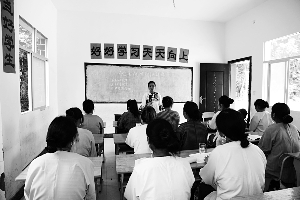 7月10日,花垣县吉卫镇白岩村计生专干龙正玉在给育龄妇女讲解优生优育知识。近年来,该村定期为广大育龄妇女进行计生咨询、开展生殖保健、发放药具等服务,使全村计划生育率、节育率、领证率均达百分之百。 李进辉 摄