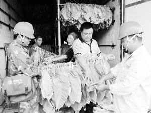 保靖县电力局对各乡镇集群联户烤房区用电保障,实行层层挂钩,把责任落实到农电员,实行24小时跟踪服务,确保烟农用电正常,深受烟农好评。图为7月12日,该局龙溪供电所农电员在复兴镇和平村集群联户烤房与烟农一起劳动。