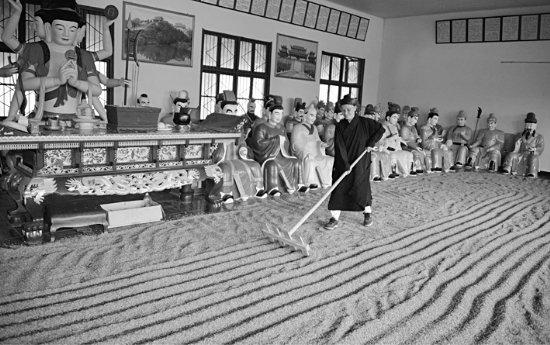 7月19日,常德市道教协会会长李嘉志道长在道观中用木耙给谷子通风,她筹资1.3亿元修建善德观,建成后将是湖南最大的道教场所,平时她却种水稻、棉花与蔬菜,自给自足。 本报记者 张 谨 摄