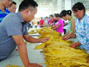 8月4日,永顺县高坪乡10个村的烟农在烟站交售散烟上万担。丰收的烟农满意而归。