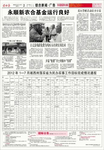 2012年1—7月湘西州落实省为民办实事工作目标完成情况通报