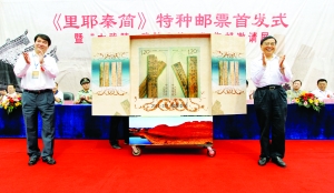 本报讯(记者 彭世贵)9月13日10时,以我国重大考古发现“里耶秦代简牍”为主题的特种邮票《里耶秦简》在龙山县秦城里耶“秦简博物馆”正式发行。中国邮政集团公司副总经理李丕征、湖南省政协副主席武吉海、湖南省邮政公司总经理熊勇武、中华集邮联合会副会长谭小为、州委书记何泽中、州长叶红专、吉首军分区司令员王忠斌、州政协副主席张官仁,州副厅级干部、州委秘书长张永中,州副厅级干部、州财政局局长何益群,吉首大学副校长李克纲出席首发仪式。 何泽中致辞,叶红专主持仪式。 《里耶秦简》特种邮票由中国邮政集团公司发行,一套两枚,面值各为1.2元。该套邮票设计典雅、质地古朴、印刷精美,邮票图案分别为书写在秦简上的“九九乘法口诀”和“秦历日”。 《里耶秦简》特种邮票设计师方军介绍说:“邮票图案选择‘九九乘法口诀’和‘秦历日’,是因为这两块简牍充分展现了中国两千多年前秦代最高的科技和数学成就,在出土的秦代简牍中最具代表性和研究价值。” 里耶古城是我国考古史上发现的第一座秦代古城。 里耶的历史文化底蕴深沉厚重,是湖南境内唯一一个既传承了秦汉文化,又融合了巴蜀文化和土家文化的历史文化古镇,拥有众多珍贵的文物古迹,是一个天然的历史文物博物馆。特别是2002年,在被专家誉为“中华第一井”的1号井内出土了36000余枚秦简,向人们讲述着被沧桑岁月淡忘的旧朝往事,使这成为全人类、全民族的精神财富,内容涉及当时的政治、军事、经济、行政、法律、典章、制度、民族、邮政、贸易、祭祀、教育等方方面面,时间从秦王嬴政二十五年到秦二世二年一年不落。这是迄今为止发现的唯一一部大秦帝国的编年史。对于研究中国历史,特别是秦代历史具有重大意义,被专家誉为“北有西安兵马俑,南有里耶秦简牍”。里耶既有古城遗存,又有数量惊人的秦代简牍出土,其价值和意义不可估量。而里耶古城的考古发现极大地弥补了一段历史空白。 何泽中在致辞中说:《里耶秦简》特种邮票是我州继《凤凰古城》之后第二套国家发行的地方题材邮票。以“国家明片”形式纪念里耶秦简,对于挖掘、研究、传承、弘扬秦文化具有十分重要的意义和不可估量的作用,这既是推介湘西、宣传湘西、展示湘西的重要平台,也是推动湘西经济发展尤其是文化旅游发展的重要机遇,必将在龙山里耶乃至湘西的发展史上留下浓墨重彩的一笔。《里耶秦简》特种邮票的发行,将成为一条纽带、一座桥梁,把所有关心、关注、关爱湘西发展的各界朋友紧紧地联系在一起,携手共创湘西美好明天! 《里耶秦简》纪念封、纪念明信片、首日封、丝织封等系列邮品即日起开始在全国邮政营业网点同步发售。 |