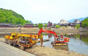 9月19日,施工人员驾驶工程机械,进入花垣县边城景区的人工湖实施清淤作业。“十一”黄金周来临之际,该县对边城景区实施环境整治,清理湖底,维修橡胶坝等工作,以新的面貌迎接八方来客。