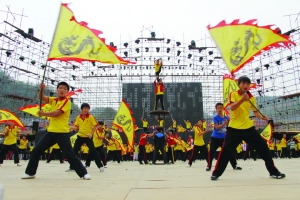 10月10日,凤凰县少林武校学生在该县体育中心排练节目《武林雄鹰》。