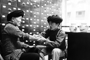 10月9日,保靖县水田河镇排捧村苗医龙清靠(右)在给骨折病人看病。龙清靠出生于苗医世家,1996年大学毕业后,继承祖辈的苗医事业,在保靖县城开苗医诊所。经过长期钻研和实践,探索出一套祖传秘方与现代医学相结合治疗跌打损伤苗医新技艺,治愈了许多患者。获患者赠送锦旗、匾牌200多面(块),成为一名享誉湘、鄂、渝、黔边区的苗医。