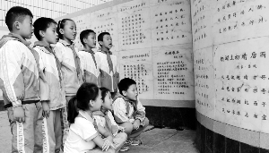 10月11日,吉大师院附小的孩子们在诗词壁前朗诵诗歌。该校编写《诗颂》教材,建设“唐诗大道”、诗词壁,着力打造“诗香校园”,传承祖国优秀文化。