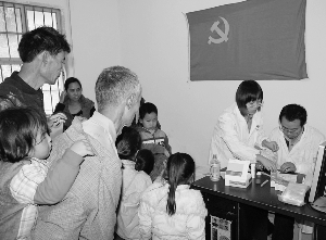 10月18日,保靖县清水坪镇卫生院的党团员义诊医疗服务队,在给留守儿童和空巢老人免费体检。连日来,该院组织党团员义诊医疗服务队,深入全镇19个村,为群众测血压、验血、称体重、量身高,把送医送药送健康活动开展到农民家门口,以实际行动迎党的“十八大”。
