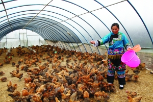 11月26日,花垣县吉卫镇白岩村村民田银金正在给山鸡喂食。两年来,该村在州委政法委、州公安局联合扶贫工作组的大力扶持下,积极引导村民发展养殖业,获得了可观的经济收入。目前,该村已有养殖大户7户,每户年均收入达6万余元。 李进辉 摄