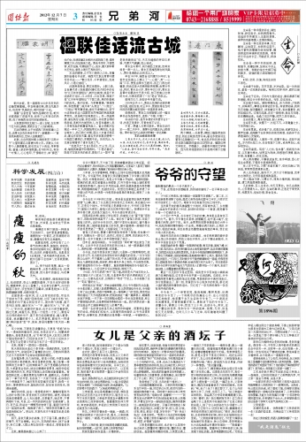 ○文/彭业忠 图/陈 昊 乾州古城,是一座拥有4200多年历史的边陲军事重镇。早在明清时期,便与凤凰齐名,坊间有“凤凰的兵、乾州的城”之说。 随着“谷韵吉首”城市品牌的打造,乾州古城得到了深度开发,迎来了从未有过的热闹,成了来湘西自治州的旅游新宠。 从恢复原样的北城门一进入古城,左右两个巨大的石牌楼,便吸引住了人们的眼球。 右边的牌楼,立于古城西门的胡家塘入口处,由黄永玉先生亲自书写了一副楹联———“曾是我来微雨后,定知人在晚廊西”。 此联,出自民国时期上海报界有“江南才子”之誉的著名记者唐大郎之手。该联从小处即个人情感着笔,前句写出了小雨后,寻常巷陌,普通人家的和谐氛围;后句则写出,有如一对情人,心心相印,于傍晚时分,来“廊西”处约会,而胡家塘正处乾州古城的西门巷,借用意境之妙,仿如神来之笔。黄老书写时,不假思索,成竹在胸,可谓铭刻于心。或许,唐大郎和黄永玉先生,曾是上海文艺界的旧交。 左边的牌楼,立于东门巷的入口处,其楹联则由著名书法家、湘西州文联主席黄叶撰写并书法———“春江花月、千年望相似,龙虎风云、小巷记曾经”。 此联用典极佳,景实而意妙。上联之典,出自唐代诗人张若虚的《春江花月夜》中的名句“江月年年望相似”。乾州古城旁,就是千年流淌的万溶江,江上明月、江边花草,难道不是“江月年年望相似”?下联之典,用的则是乾州的历史。乾州古城,乃军事重镇,“居楚西南、界连黔蜀”,城外有“头炮台”、“二炮台”、“三炮台”等军事设施。曾任天津镇总兵,坚守大沽炮台抗击八国联军壮烈殉国的民族英雄罗荣光,就是乾州古城里的人;另一民族英雄,曾任陕甘总督,抗击法国人并收复台湾的杨岳斌,是乾州古城里的人;吉首社塘坡人吴八月等发起的乾嘉苗民起义,曾占领乾州古城达一年半之久;民国陆军次长傅良佐,也是古城中人;抗日救亡时期,国立八中曾迁移至此;著名作家张天翼、著名史学家翦伯赞等一大批国之精英们,亦寓居于此。历史风云,为这座古城增添了诸多龙虎之气。 “龙虎风云”出自《易经》,云从龙、风从虎,喻指英雄豪杰际遇得时。“小巷记曾经”,既是对古城历史的叙述,更是对上一联中“曾是我来微雨后”句,天衣无缝般的呼应与承接,可谓大气磅礴,匠心独运。 黄永玉与黄叶,同为湘西土家族,但其实却是一南一北人。黄永玉是湘西南边的凤凰人,黄叶是湘西北边的龙山人。 早在1987年,湘西自治州建州30年时,吉首市在花果山上建立了“一心阁”,其“一心阁”三字,便是由黄永玉题写;而正门两边的楹联,则由吉首大学教授彭秀枢撰,由黄叶书法。其时,黄永玉63岁,黄叶年仅23岁。黄永玉是黄叶仰慕的文艺界大师,却不想竟以这样的方式,与黄老获得了一次“笔会”的机会。 虽神交已久,但却多年未曾交流。 2005年正月十八,黄老从花垣的边城茶峒回凤凰,途经吉首,时正中午,便被安排在当时州政府所属边城宾馆的一间套房里休息。 进得房间,黄老立马被墙壁上的一幅狂草书法作品所吸引,连称:“不错,不错!” 书法的内容,是苏东坡的《赤壁怀古》一词;作者正是黄叶,可黄老却不认识。 于是,便遣人与黄叶联系。黄老主动约定———第二天中午,请黄叶去凤凰玉氏山房做客。黄叶有《玉氏山房夜饮即事》一诗记其事: 玉氏山房夜饮即事 乙酉正月十九,应永玉先生之邀,赴玉氏山房,与先生谈诗论艺。夜饮乐甚,嘱余狂草。先生亦挥毫泼墨,并以六尺墨荷相赠。题曰:“乙酉春,黄叶来舍写字,作荷以报。”感其深意。以诗记之。 春回寒气尽,百卉吐葳蕤。 瑞雪藏丰泽,腊梅掩玉扉。 日出山房暖,风轻笑语飞。 主客忘年谱,兰卮映锦翬。 握管龙蛇走,挥毫水墨瑰。 感翁期励意,为学应心追。 两个牌楼,一处新景;牌楼上楹联带来的佳话,则在古城里流传开来。著名作家梁羽生著有《名联趣谈》一书,他在品评和玩赏中国的名联与趣联时曾说过这样的话,楹联这种文学形式,字数最少,却最有中国的文学特色,因为用其他国家的文字是绝对做不出楹联的。 |
