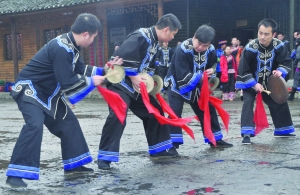 12月13日,龙山县苗儿滩镇捞车河村四名土家族青年正在练习土家族国家级非物质文化遗产打溜子。今年以来,该县组织专职人员进村入户,宣传、培训土家族非物质文化遗产青年传承人,掀起了土家族青年保护、学习、传承、发扬土家族非物质文化遗产的热潮。 田志波 吴进阳 摄