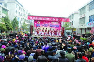 12月18日,湘西州民族歌舞团携手永顺县土家族民族艺术团,代表州委、州政府,永顺县委、县政府来到永顺县石堤镇,利用墟场日载歌载舞宣传十八大会议精神。图为群众观看文艺演出现场。