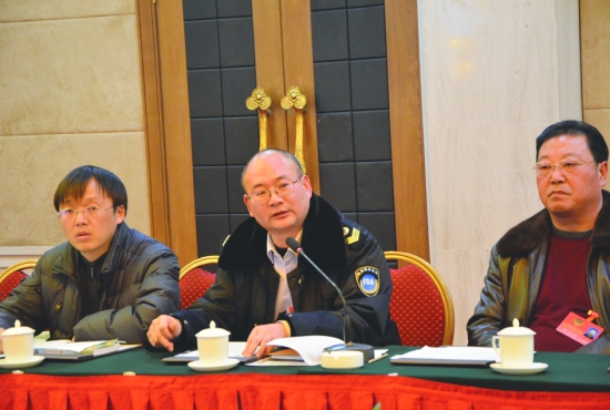 陈延明委员(中)就食品安全问题提出自己的建议和看法。 本报记者 彭 伟 周玮玮 摄