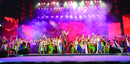 2012年12月31日晚,“梦里湘西”经典歌曲新星演唱会在吉大体育馆开唱,我国著名歌唱家王春雷倾情演唱成名曲《吉祥》,将晚会推向高潮。 本报记者 田宏贵 摄