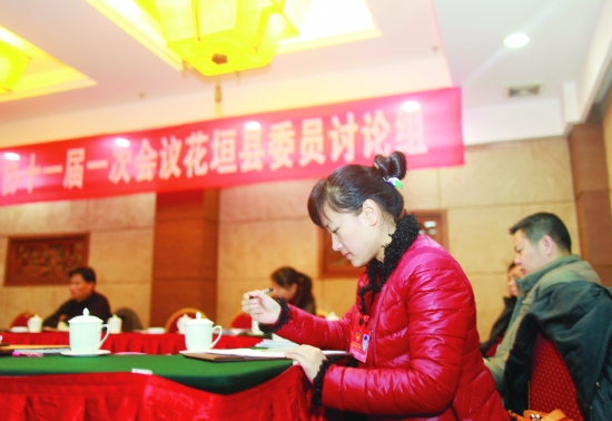 花垣县政协委员陈茜在撰写关于请求免除湘西自治州车辆吉茶高速矮寨大桥过桥费的提案。 本报记者 彭 伟 周玮玮 摄