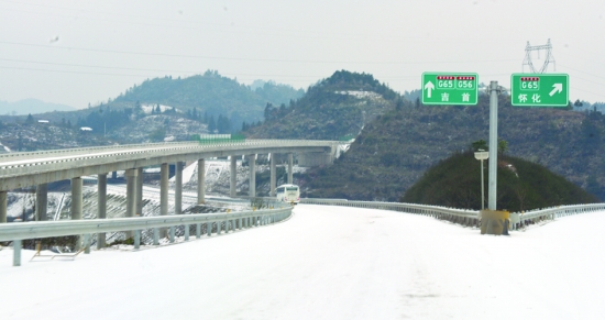 近日,我州受冰雪影响,众多高速路段出现积雪现象,特别是桥梁上出现结冰情况,交通部门设立警示标志牌,在高速入口大屏幕上显示警示标语,提醒广大司机注意行车安全。 本报记者 张 谨 摄