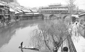 1月4日晨,凤凰古城银装素裹。 张 谨 摄