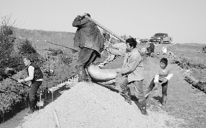 1月10日,花垣县花垣镇蚩尤村土地整理项目工地,施工人员正忙着修建灌溉排水沟渠和田间机耕道。近年来,该县实施土地开发整理项目6个,新增耕地2670余亩,上万农民从中直接获益。 潘尚德 摄