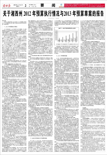 关于湘西州2012年预算执行情况与2013年预算草案的报告