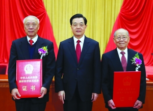 新华社北京1月18日电 (记者 霍小光 顾瑞珍)中共中央、国务院18日上午在人民大会堂隆重举行国家科学技术奖励大会。胡锦涛、习近平、温家宝、李克强、刘云山出席大会并为获奖代表颁奖。习近平主持大会。温家宝代表党中央、国务院在大会上讲话。李克强宣读奖励决定。 上午10时,中共中央总书记、中共中央军委主席习近平宣布大会开始。国家主席胡锦涛向获得2012年度国家最高科学技术奖的中国科学院院士、中国工程院院士、中国科学院力学研究所研究员郑哲敏,中国工程院院士、中国电子科技集团公司电子科学研究院研究员王小谟颁发奖励证书。随后,胡锦涛、习近平等向获得国家自然科学奖、国家技术发明奖、国家科学技术进步奖和中华人民共和国国际科学技术合作奖的代表颁奖。 习近平在主持大会时指出,党中央、国务院隆重奖励在我国科学技术事业发展中作出杰出贡献的科技工作者,充分体现了党和国家对我国科学技术事业发展的高度重视和对广大科技工作者的亲切关怀。他希望广大科技工作者以获奖者为榜样,继续发扬求真务实、勇于创新的精神,始终把祖国和人民放在心中,努力作出无愧于时代、无愧于人民的创新成果。 习近平强调,要高举中国特色社会主义伟大旗帜,全面贯彻落实党的十八大精神,以邓小平理论、“三个代表”重要思想、科学发展观为指导,加快创新型国家建设,努力实现创新驱动发展,为全面建成小康社会而奋斗,共同创造中国人民和中华民族更加幸福美好的未来。 国务院总理温家宝在讲话中指出,实现党的十八大提出的到2020年全面建成小康社会的宏伟目标,必须实施科教兴国战略,把科技创新摆在国家发展全局的核心位置。 温家宝强调,要深化科技体制改革,坚持把科研的重点放在产业发展前沿,以企业为主导深化产学研结合,下大力气攻克核心技术和关键技术,争取在高技术产品研发和市场开拓上取得重大突破。要瞄准关系全局和长远发展的战略必争领域,加强基础研究、前沿先导技术研究,为经济社会发展提供新的动力源泉。要努力营造各类创新主体平等竞争的政策环境,形成崇尚科学、遵循规律、尊重知识、尊重人才的良好风尚。 中共中央政治局常委、国务院副总理李克强在会上宣读了《国务院关于2012年度国家科学技术奖励的决定》。 王小谟代表全体获奖人员发言。 出席大会的领导同志还有:马凯、回良玉、刘延东、刘奇葆、范长龙、赵乐际、路甬祥、万钢以及中央军委委员房峰辉、张阳、赵克石、张又侠。 中央和国家机关及军队有关方面负责同志,国家科技教育领导小组成员,国家科学技术奖励委员会委员和首都科技界代表3300余人出席大会。 2012年度国家科学技术奖共授奖330个项目和7位科技专家。 |