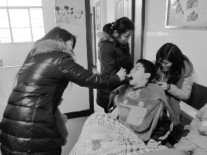 1月19日是我国传统腊八节,我州2012届公选高学历人才一行20余人前往州福利院看望老人和小孩,给他们带去节日祝福,并送上新年礼物。图为“高学历人才”喂小朋友吃中餐。 蒋懿樟 摄